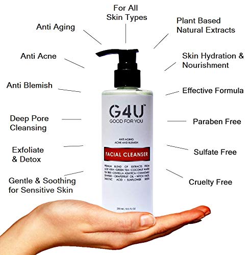 The G4U natural face cleanser provides best results for anti-aging, anti-blemish and also fights against acne. Its unique formula is designed to work well for both women and men